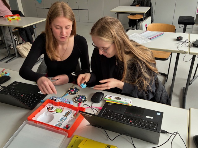 Parallel dazu erhielten angehende Erzieherinnen und Erzieher der Fachakademie (FAK) einen Einblick in die Welt der Programmierung. Im sogenannten Calliope-Mini-Workshop arbeiteten sie mit einem Mikrocontroller, der speziell für den Einstieg – bereits ab der Grundschule – konzipiert ist. Neben eigenen Programmiererfahrungen nahmen die Teilnehmenden auch konkrete Ideen für den späteren Einsatz in der pädagogischen Praxis mit.