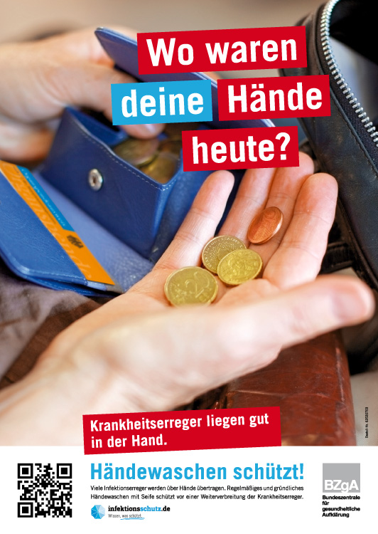 • allgemein wachsam auf potenzielle Infektionsquellen (z.B. Bargeld) achten