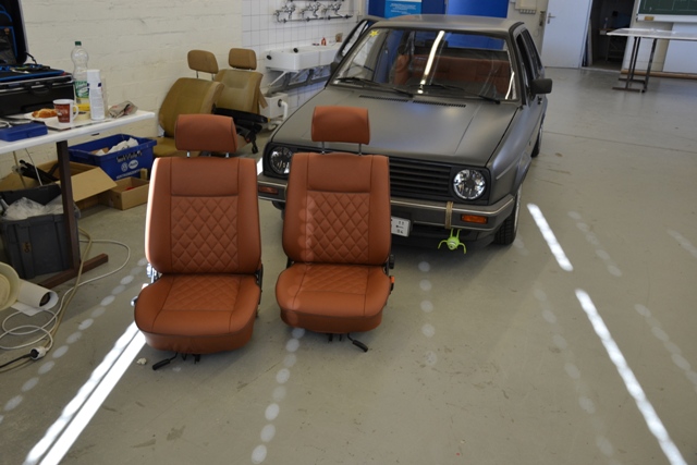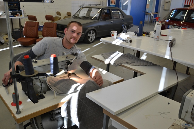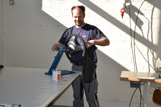 Der Meisterkurs der Sattler-Innung Südbayern im Bundesfachzentrum in Mainburg ist inzwischen der einzige bundesweite Vollzeitkurs für diese Berufsgruppe. Die Teilnehmer sind oft viele hundert Kilometer angereist. Wie die 32-Jährige Lena Knippenberg aus Niedersachsen. Sie hat einen Dressursattel angefertigt. Ihre Kollegin Julia Mönch aus Loßburg im Landkreis Freudenstadt in Baden-Württemberg ein Selett mit Bauchgurt, sprich ein Zuggeschirr für Pferde. Sascha Berngehrer aus Straubing wiederum stattete ein knallgelbes VW Käfer Cabrio 1302 LS unter anderem mit neuen Sitzen sowie Tür- und Seitenverkleidungen aus. Die Meisterstücke sind allesamt völlig unterschiedlich.