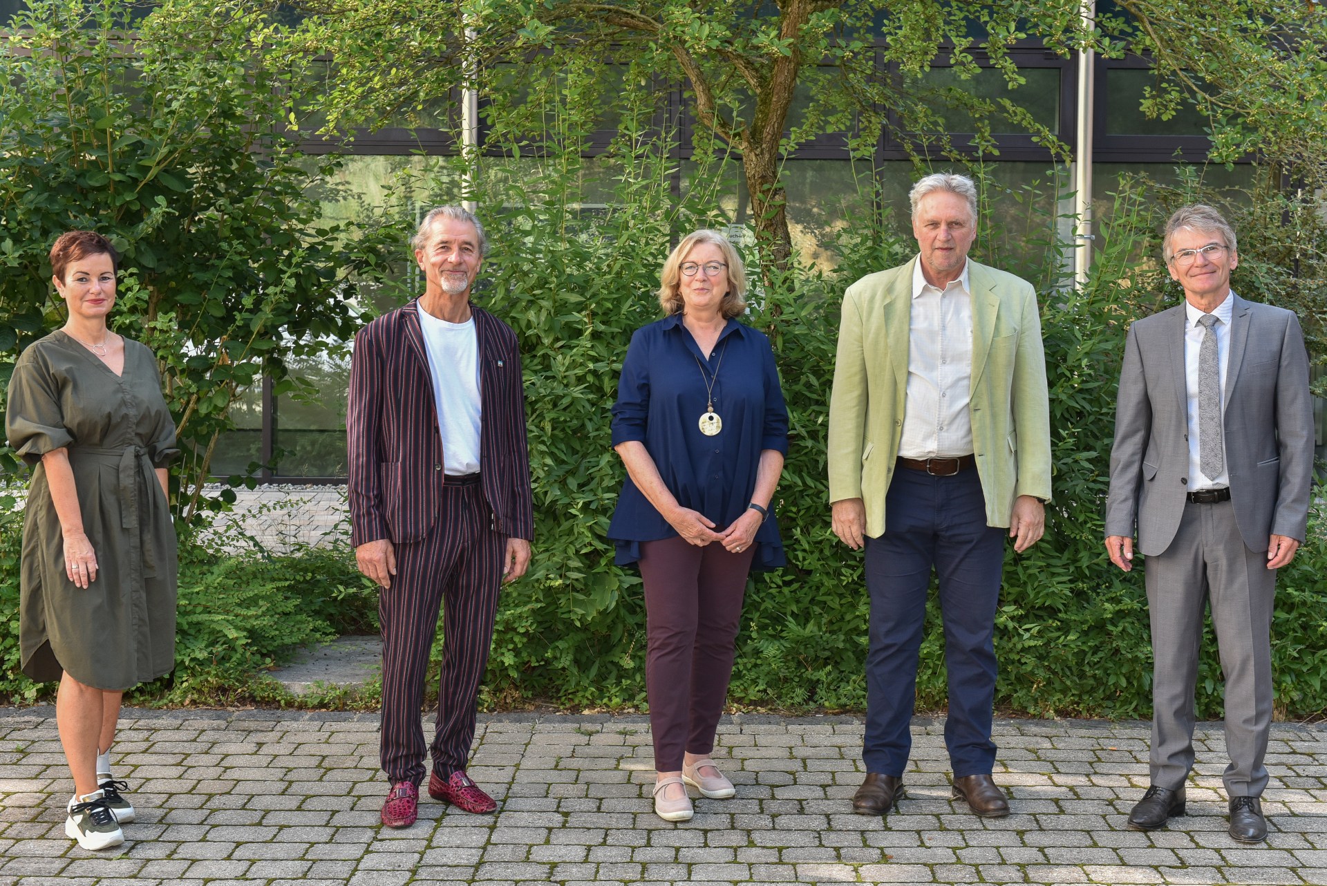 Die Stellvertretende Schulleiterin StDin Karin Köglmeier zusammen mit den Pensionisten Sebastian Stadler, Christa Kittl und Ludwig Mittl sowie mit Schulleiter OStD Johann Huber (v.l.n.r.).