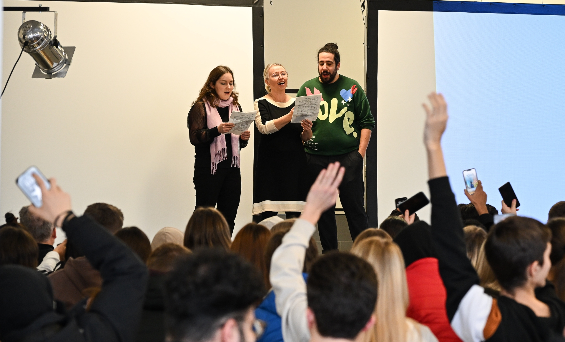 Die gute Stimmung in der Aula war so ansteckend, dass immer weitere Schülerinnen und Schüler gegen Ende der Veranstaltung spontan auf der Bühne auftreten wollten!